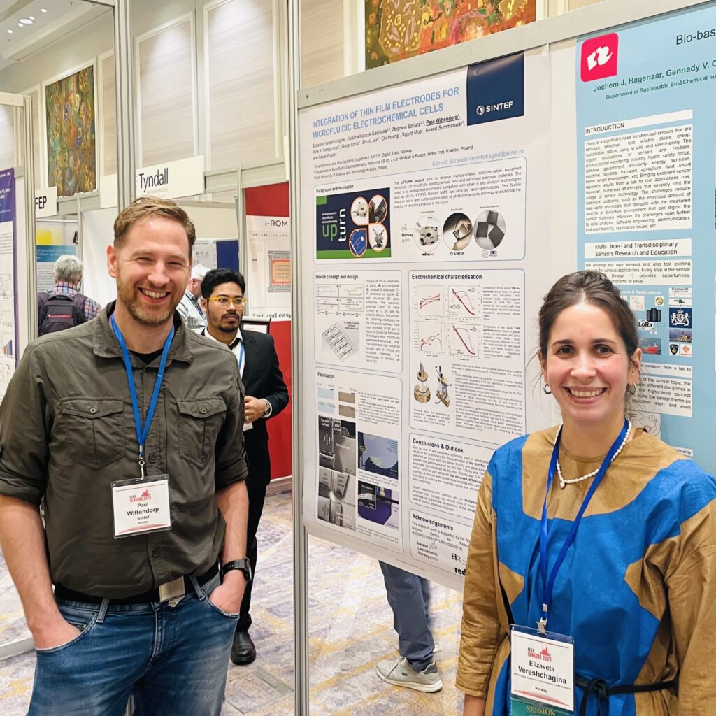W ubiegłym tygodniu Elizaveta Vereshchagina i Paul Wittendorp (SINTEF, Norwegia) wzięli udział w konferencji międzynarodowej IEEE SENSORS 2023 w Wiedniu. Jest to konferencja z 25-letnią tradycją, gdzie spotykają się naukowcy, inżynierowe i praktycy z całego świata. Członkowie naszego zespołu podczas sesji posterowej zaprezentowali pracę pt. „Integration of Thin Film Electrodes for Microfluidic Electrochemical Cells, która powstała we współpracy SINTEF i redoxme AB. Przedstawione wyniki dotyczyły właściwości elektrod cienkowarstwowych, które są wykorzystywane w układach mikroprzepływowych.