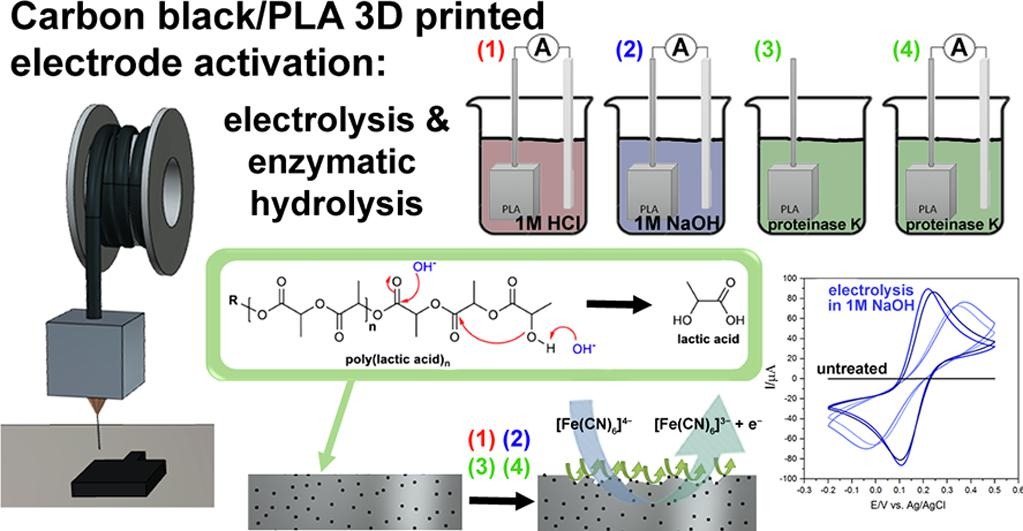 The role of electrolysis and enzymatic hydrolysis treatment in the enhancement of the electrochemical properties of 3D-printed carbon black/poly(lactic acid) structures